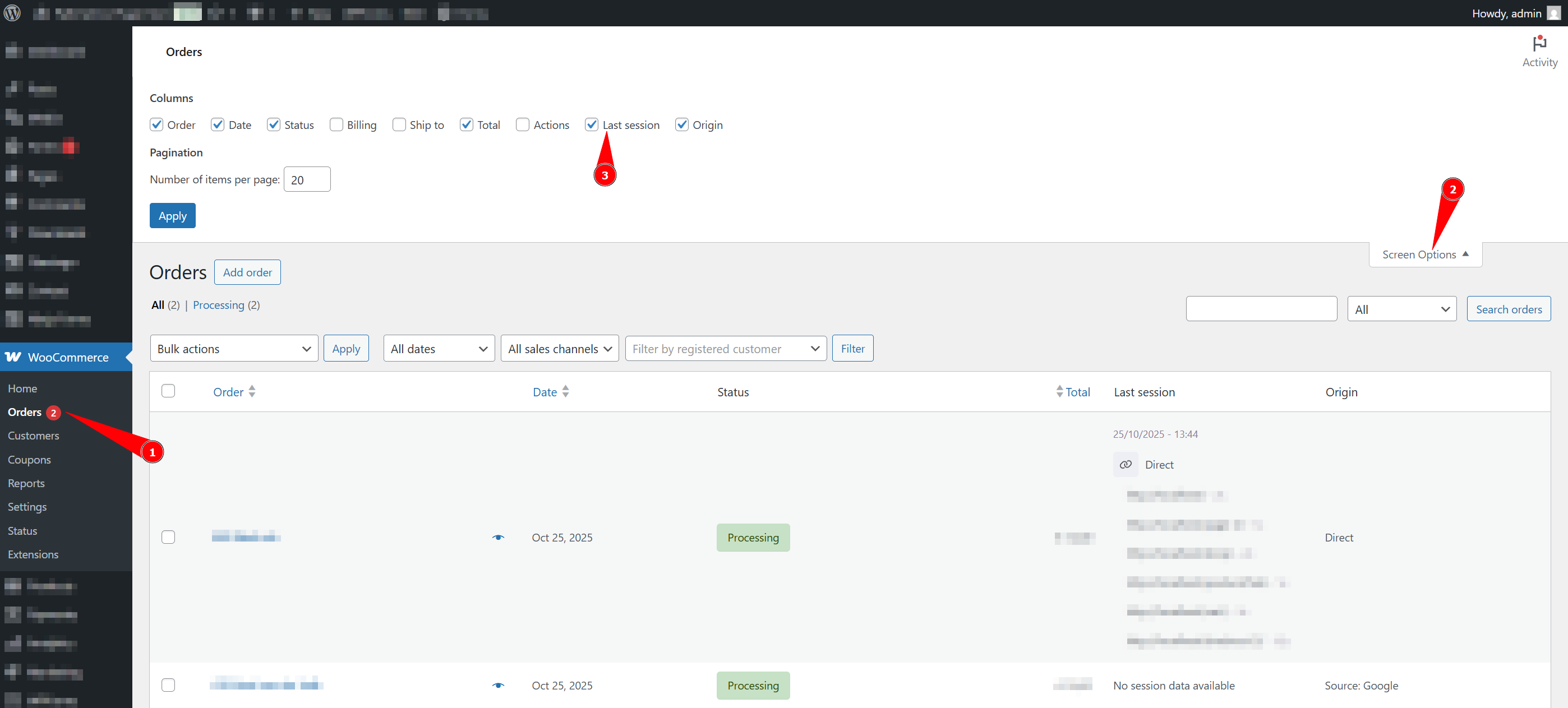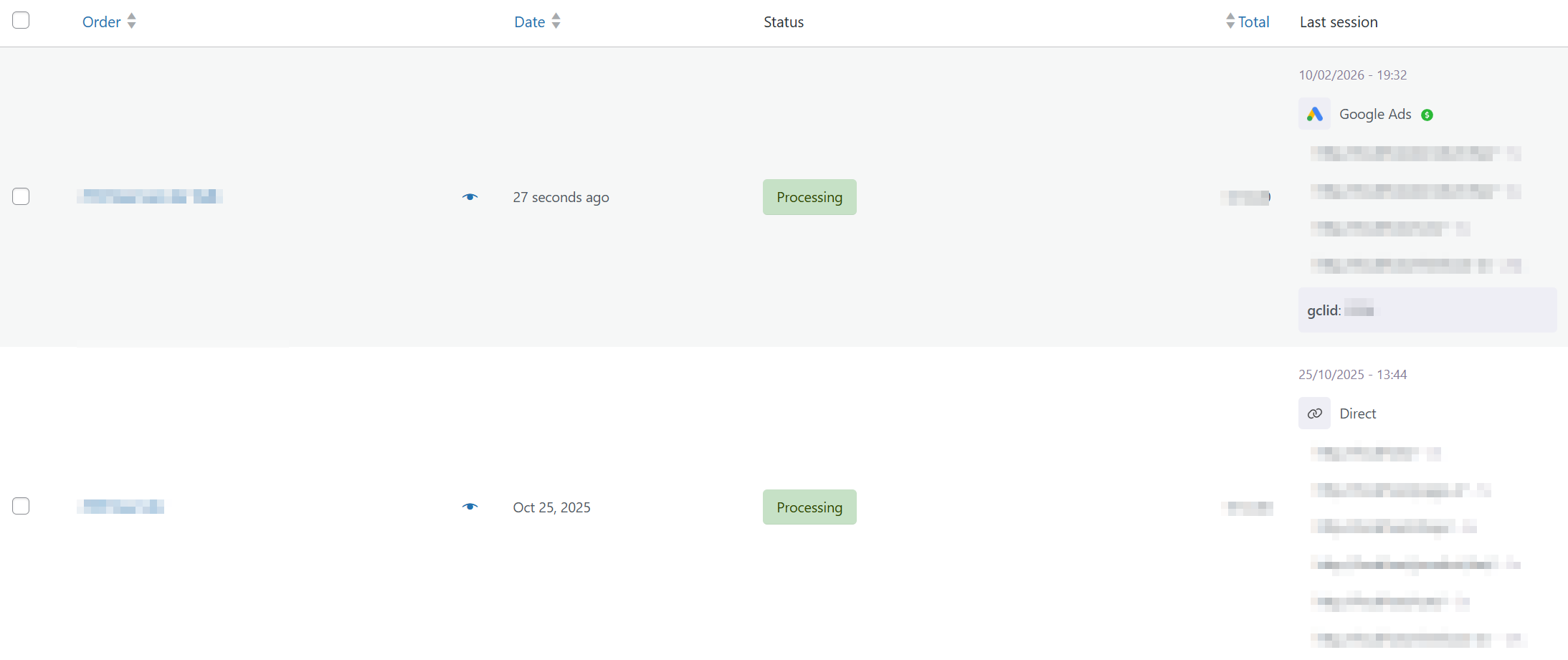 When viewing the list of all WooCommerce orders, Pathmetrics adds a new optional column called “Last Touchpoint”. Once enabled, you’ll see the following information for each order: