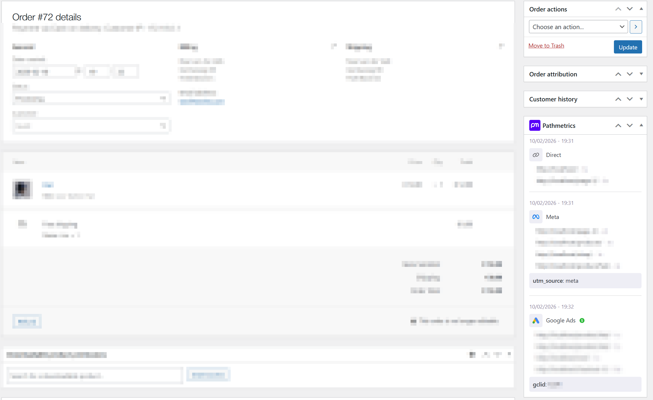 When you open a specific WooCommerce order, Pathmetrics adds a detailed Visitor Journey section showing: